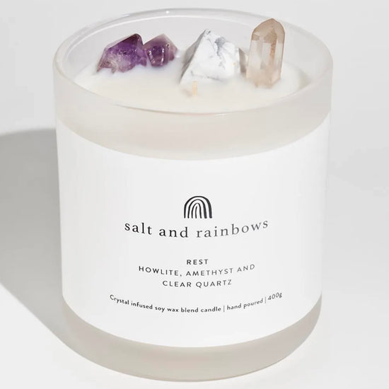 All our candles are hand poured in our Fleurieu Peninsula studio and crafted with a soy wax blend, charged crystals, and a carefully curated fragrance. We ensure that each crystal is infused in the wax before finding their home in your candle to give you the maximum benefit of their energy.